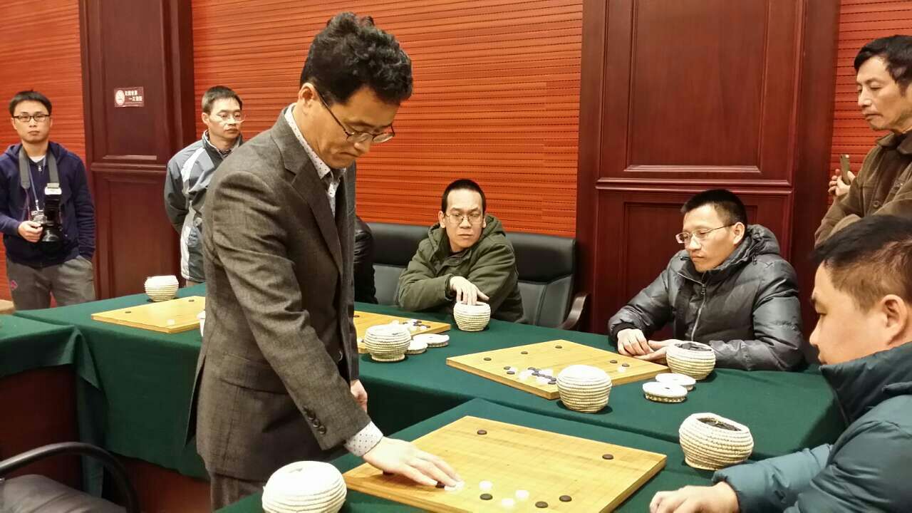 在广西最大的钢铁企业--柳州钢铁(集团)公司会议中心,梁宰豪九段与柳钢的围棋爱好者进行了五面打让子指导棋,尽管公务繁身、退出一线良久,但作为曾经的首届东洋证券杯冠军、昔日韩国的“挑战五虎”之首的梁宰豪九段,出手依然锐利果断,开局不久就轻松的在多盘棋打开了局面,最终以4比1的比分轻松取胜,让柳钢的爱好者们真正领略了专业棋手的非凡功力。