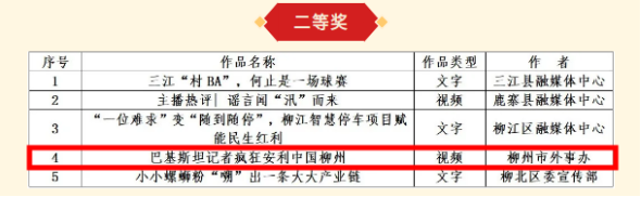 近日,由柳州市委网信办举办的2025“好评柳州”网络评论大赛获奖名单公示,市外事办原创短视频作品《巴基斯坦记者疯狂安利中国柳州》在136件有效作品中脱颖而出,荣获团体组二等奖。