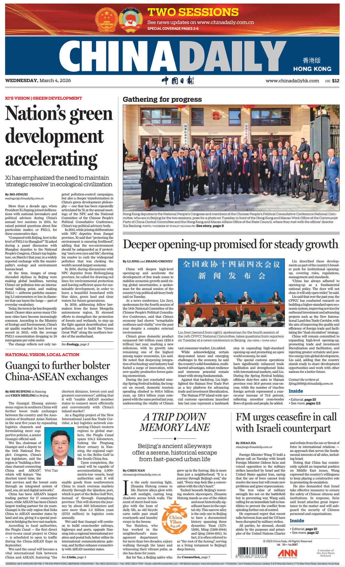 《中国日报》香港版头版版面