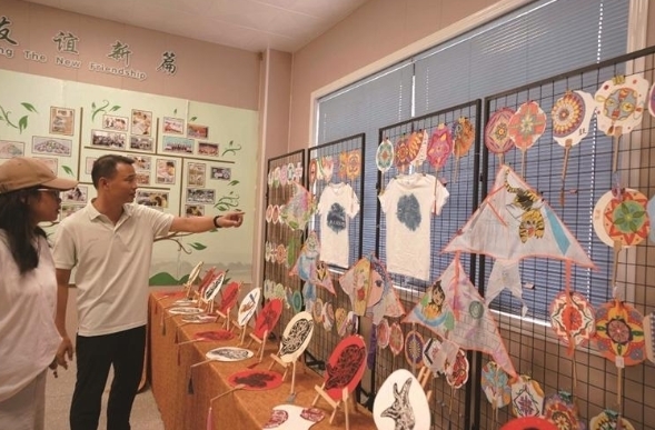 学校“飞虎队精神学习交流园地”里,有飞虎队历史照片展,还有2023年交流活动的珍贵瞬间。社团工作坊中,学生们制作飞虎队主题手工艺品,将飞虎队元素融入拓印、扎染作品,用民族非遗技艺铭记飞虎记忆。