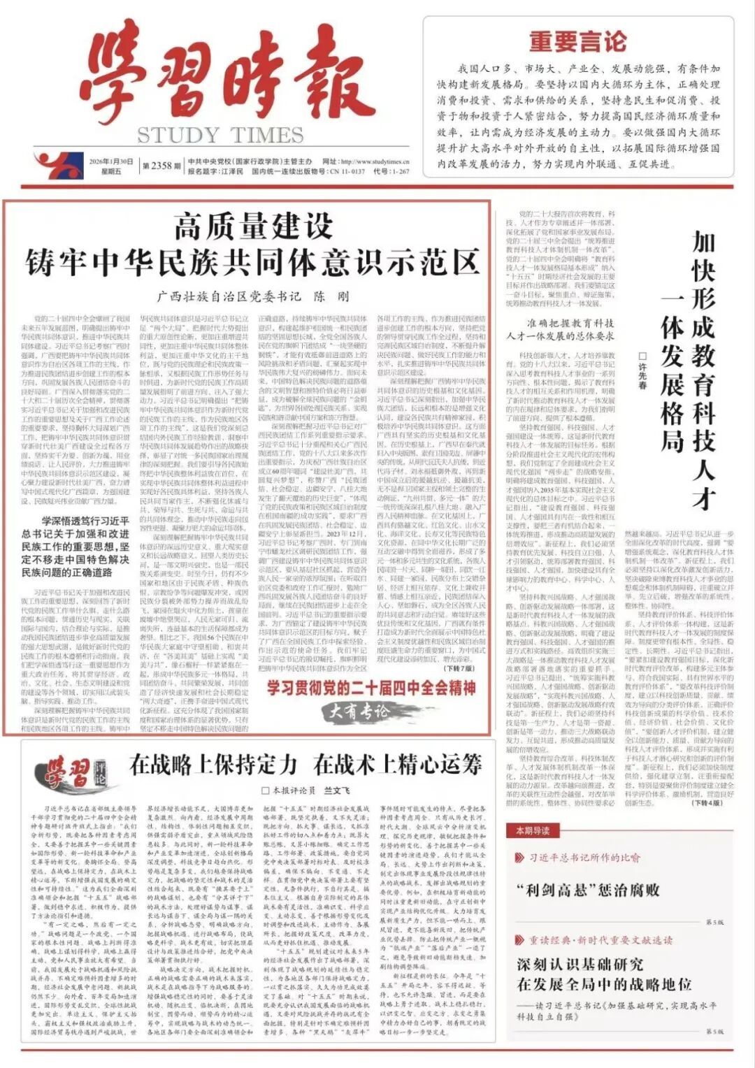 《学习时报》头版头条署名文章|陈刚:高质量建设铸牢中华民族共同体意识示范区
